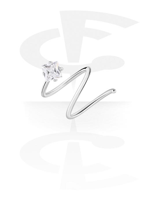 Double nose ring (surgical steel, silver, shiny finish) with crystal stone