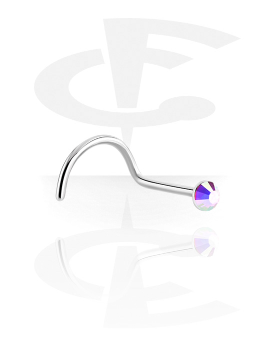 Curved nose stud (surgical steel, silver, shiny finish) with crystal stone