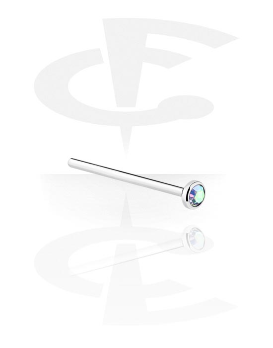 Straight nose stud (surgical steel, silver, shiny finish) with crystal stone