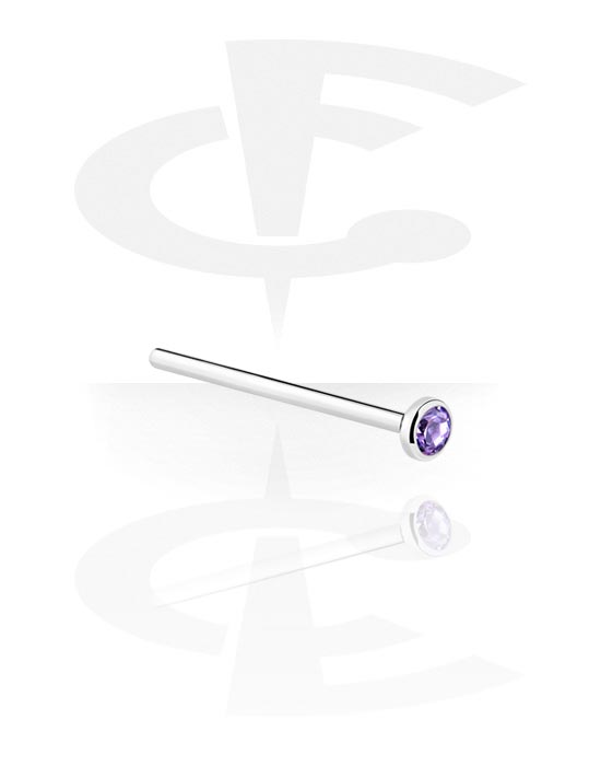 Straight nose stud (surgical steel, silver, shiny finish) with crystal stone