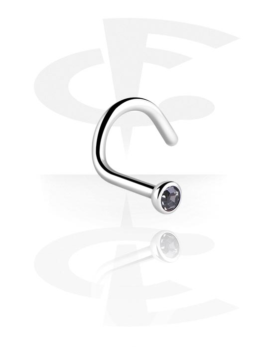 Curved nose stud (surgical steel, silver, shiny finish) with crystal stone