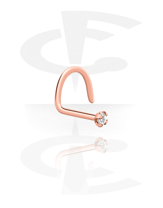 Curved nose stud (surgical steel, rose gold, shiny finish) with crystal stone