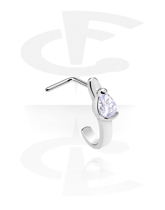 L-shaped nose stud (surgical steel, silver, shiny finish) with crystal stone