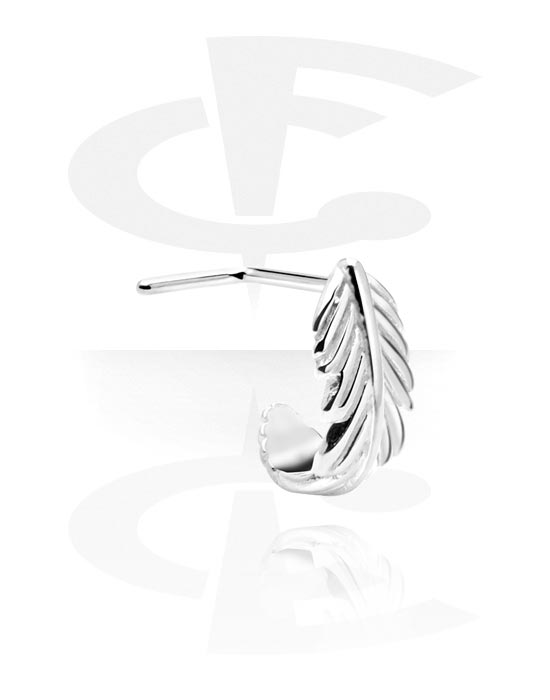L-shaped nose stud (surgical steel, silver, shiny finish) with feather attachment