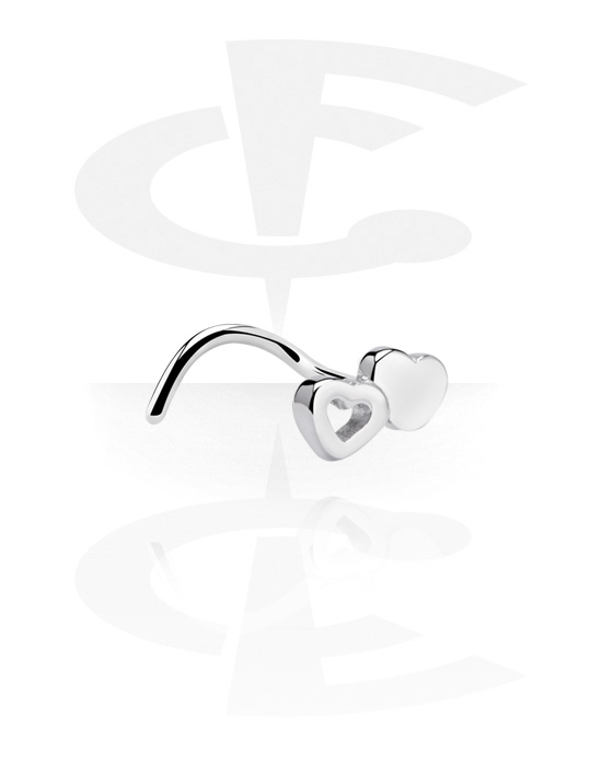 Curved nose stud (surgical steel, silver, shiny finish) with heart attachment
