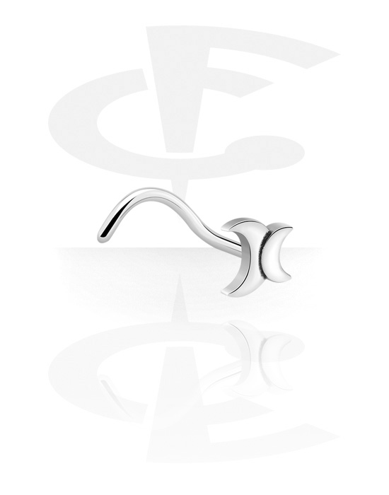 Curved nose stud (surgical steel, silver, shiny finish) with half moon charm