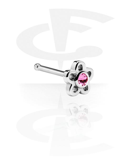 Straight nose stud (surgical steel, silver, shiny finish) with flower attachment and crystal stone