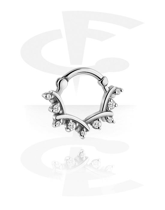 Septum clicker (surgical steel, silver, shiny finish) with crystal stones