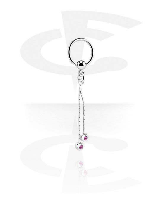Ball closure ring (surgical steel, silver, shiny finish) with heart charm and crystal stones
