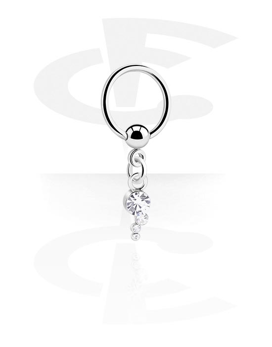 Ball closure ring (surgical steel, silver, shiny finish) with charm and crystal stones