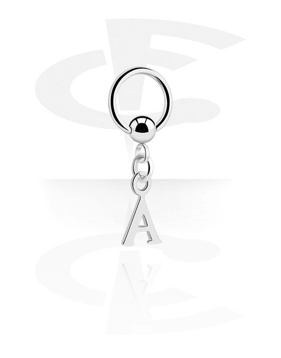 Ball closure ring (surgical steel, silver, shiny finish) with charm with letter "A"