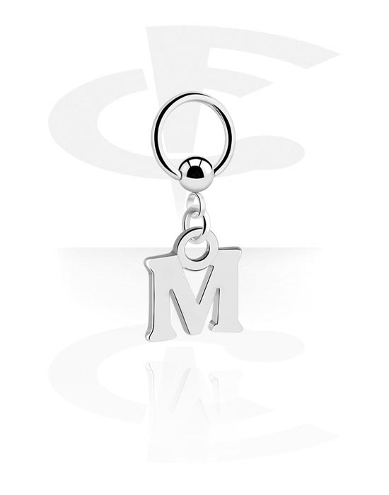 Ball closure ring (surgical steel, silver, shiny finish) with charm with letter "M"