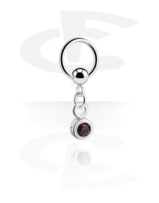 Ball closure ring (surgical steel, silver, shiny finish) with charm and crystal stone