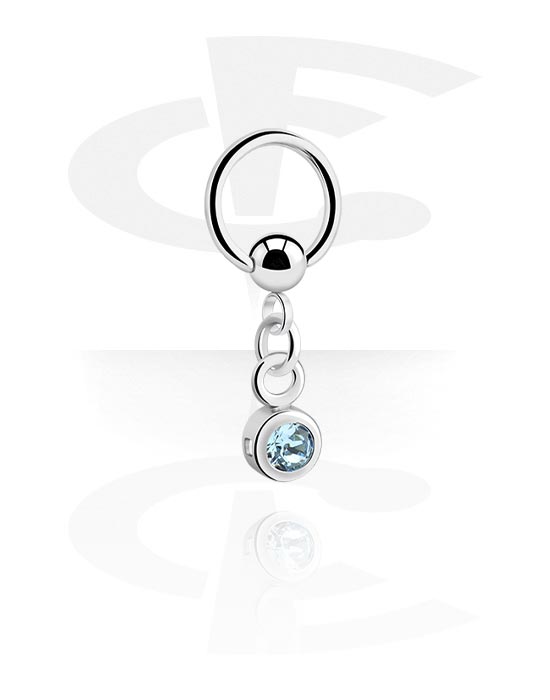 Ball closure ring (surgical steel, silver, shiny finish) with charm and crystal stone