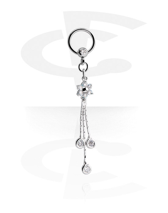 Ball closure ring (surgical steel, silver, shiny finish) with flower charm and crystal stones