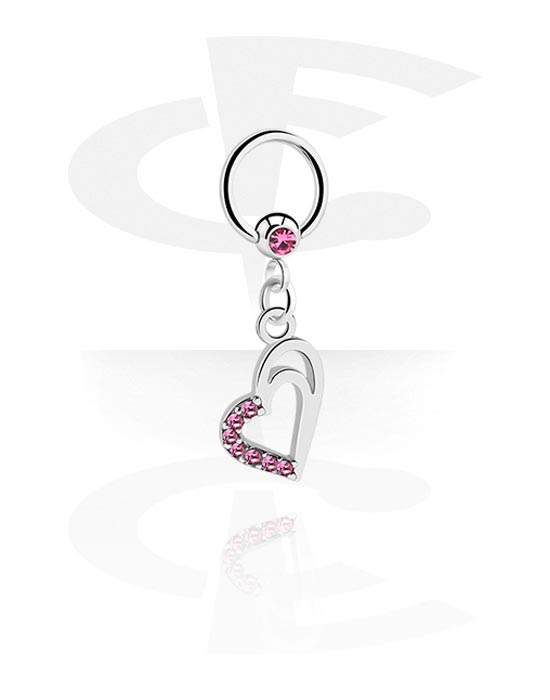 Ball closure ring (surgical steel, silver, shiny finish) with heart charm and crystal stones