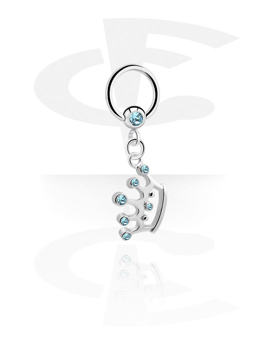 Ball closure ring (surgical steel, silver, shiny finish) with crown charm and crystal stones
