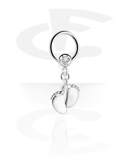 Ball closure ring (surgical steel, silver, shiny finish) with crystal stone and foot charm