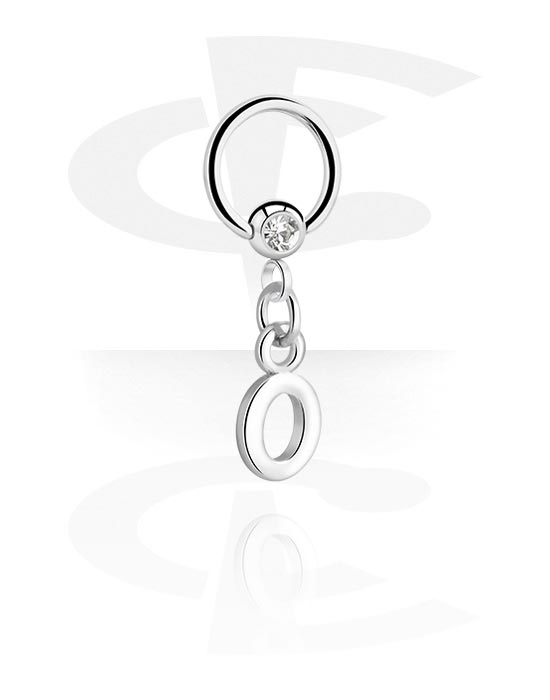 Ball closure ring (surgical steel, silver, shiny finish) with crystal stone and charm with letter "O"