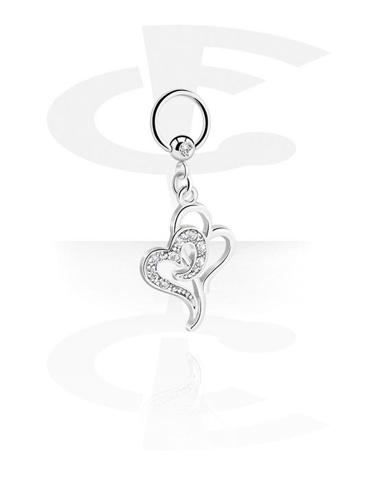 Ball closure ring (surgical steel, silver, shiny finish) with crystal stone and heart charm