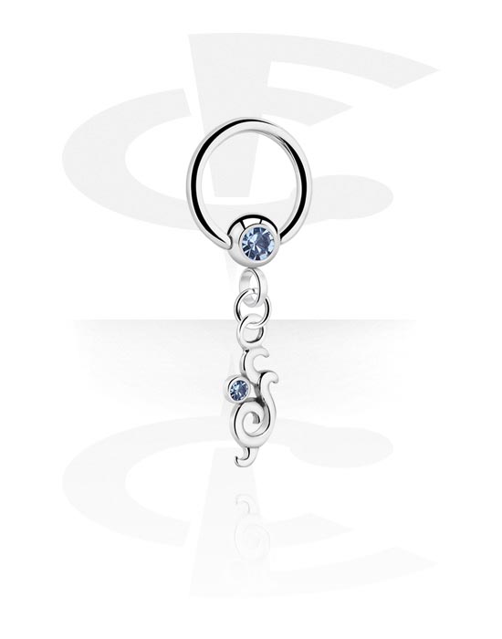 Ball closure ring (surgical steel, silver, shiny finish) with crystal stone and charm
