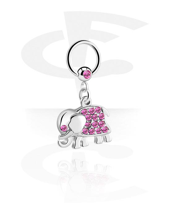 Ball closure ring (surgical steel, silver, shiny finish) with elephant charm and crystal stones
