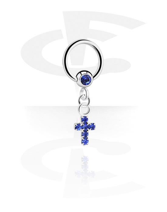 Ball closure ring (surgical steel, silver, shiny finish) with crystal stone and cross charm