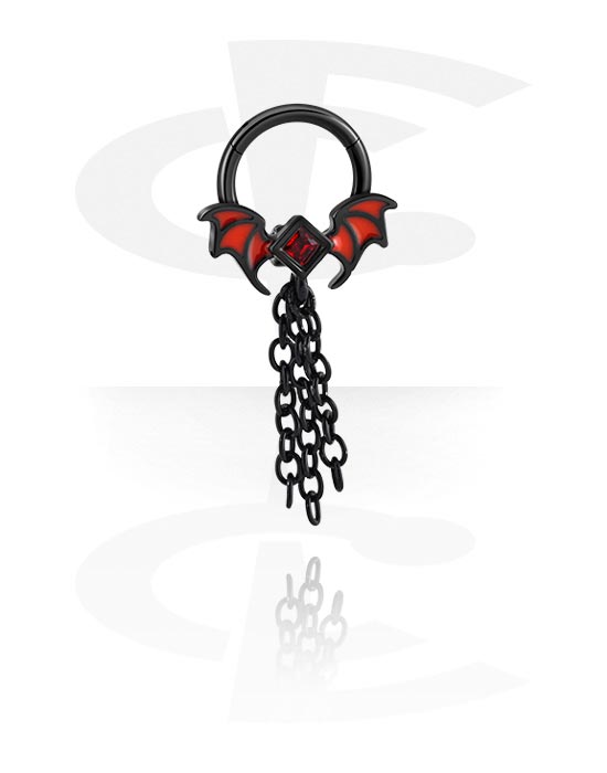 Piercing clicker (surgical steel, black, shiny finish) with bat design and chain