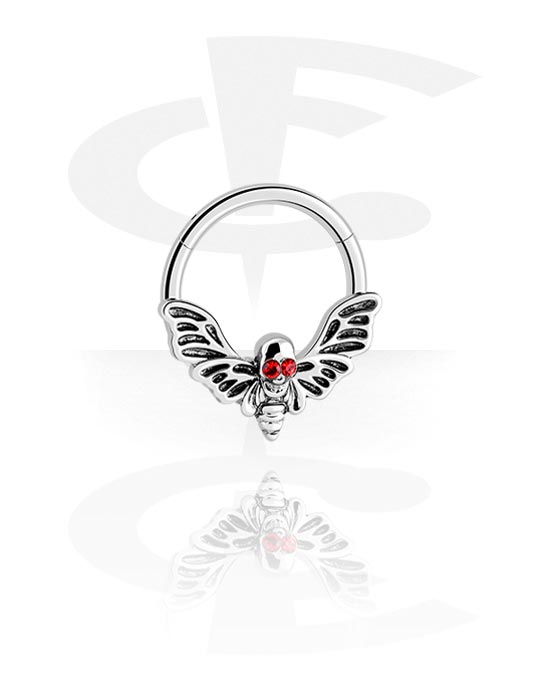Piercing clicker (surgical steel, silver, shiny finish) with skull design and crystal stones