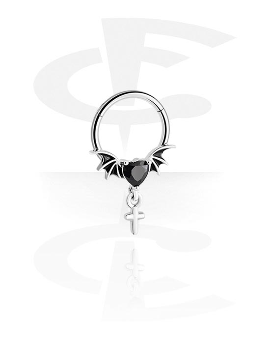 Piercing clicker (surgical steel, silver, shiny finish) with crystal heart and cross charm