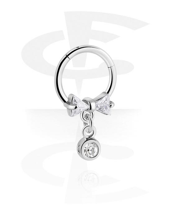 Piercing clicker (surgical steel, silver, shiny finish) with bow and crystal stones