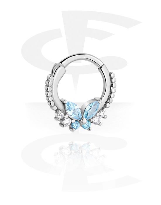 Piercing clicker (surgical steel, silver, shiny finish) with crystal stones and crystal stone in various colours