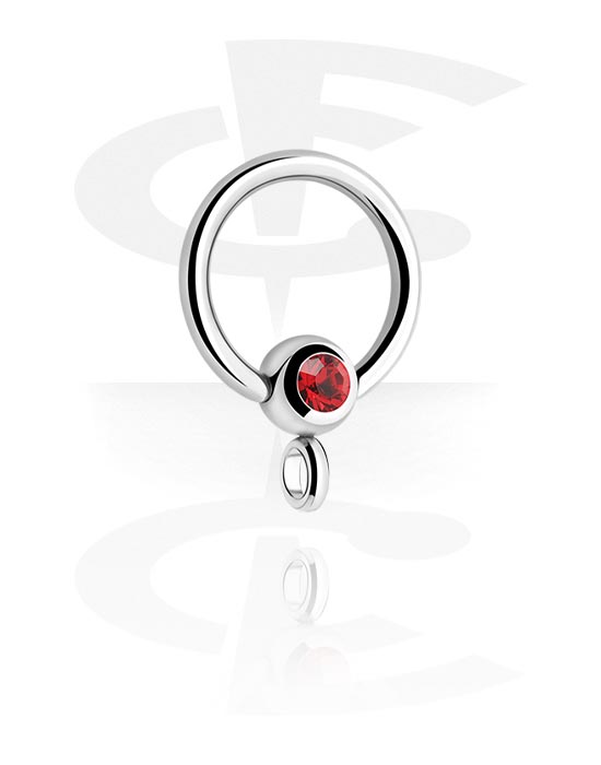 Ball closure ring (surgical steel, silver, shiny finish) with crystal stone and hoop for attachments