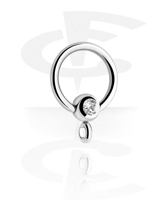 Ball closure ring (surgical steel, silver, shiny finish) with crystal stone and hoop for attachments