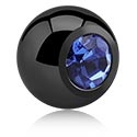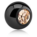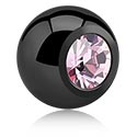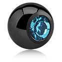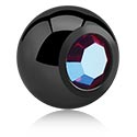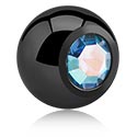 Ball for threaded pins (surgical steel, black, shiny finish) with crystal stone