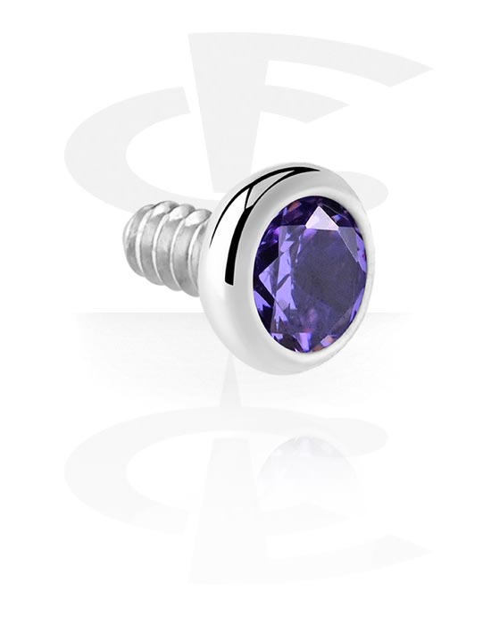Attachment for internally threaded pins (titanium, silver, shiny finish) with crystal stone