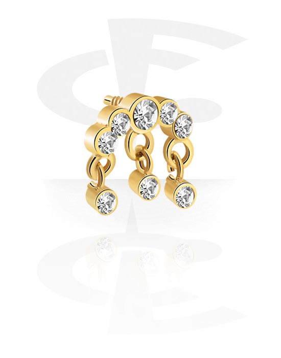 Attachment for internally threaded pins (surgical steel, gold, shiny finish) with crystal stones