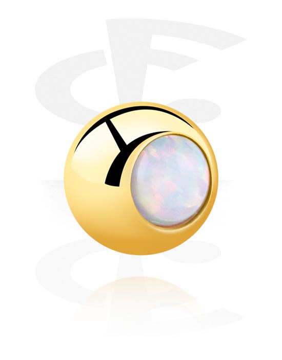 Ball for threaded pins (surgical steel, gold, shiny finish) with synthetic opal