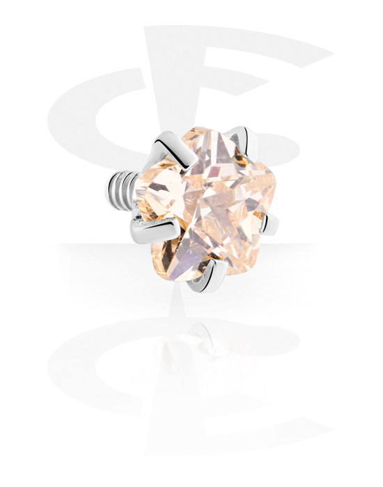 Attachment for 1.2mm internally threaded pins (surgical steel, silver, shiny finish) with crystal stone
