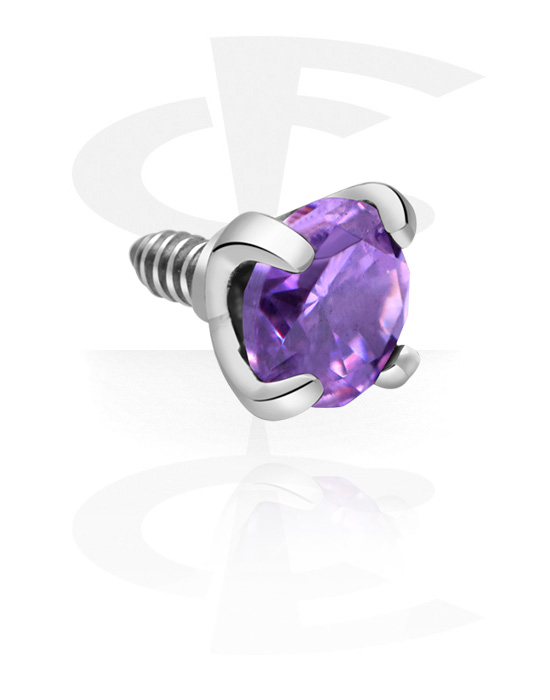 Attachment for internally threaded pins (surgical steel, silver, shiny finish) with crystal stone