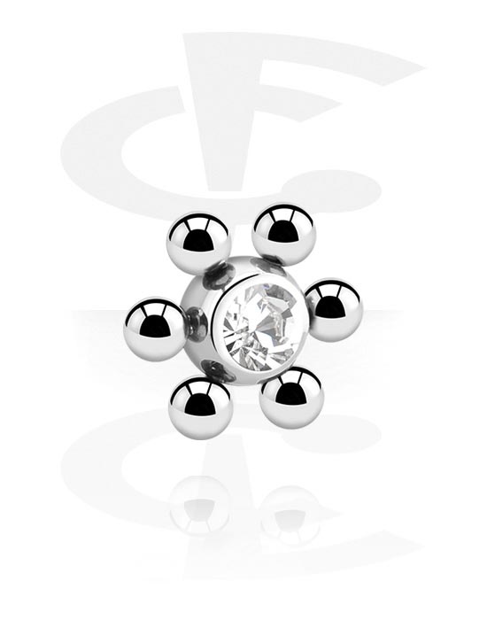 Attachment for 1.6mm threaded pins (surgical steel, silver, shiny finish) with crystal stone