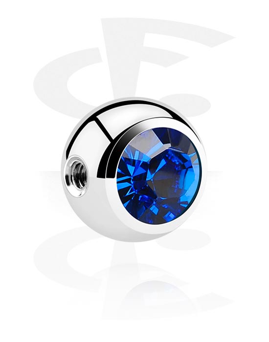 Ball for threaded pins (surgical steel, silver, shiny finish) with crystal stone