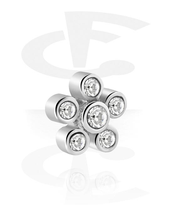 Attachment for 1.2mm threaded pins (surgical steel, silver, shiny finish) with crystal stones