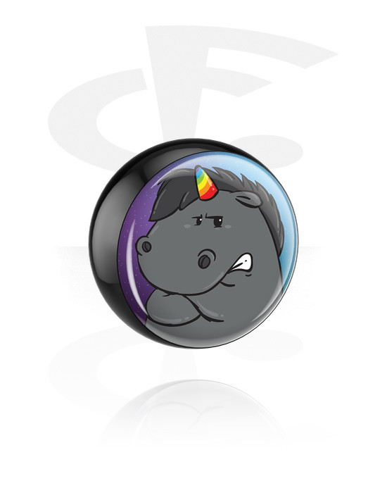 Ball for 1.6mm threaded pins (surgical steel, black, shiny finish) with Chubby Unicorn Design