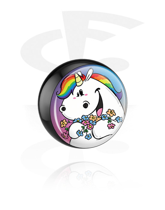 Ball for 1.6mm threaded pins (surgical steel, black, shiny finish) with Chubby Unicorn Design