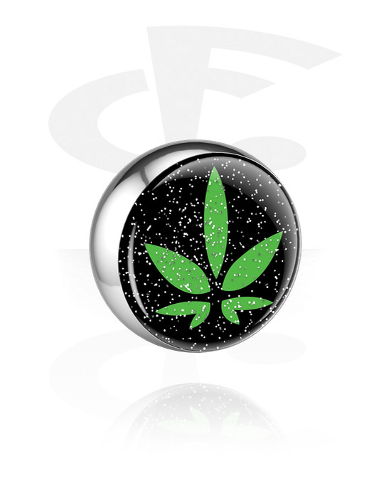 Ball for 1.6mm threaded pins (surgical steel, silver, shiny finish) with Cannabis design