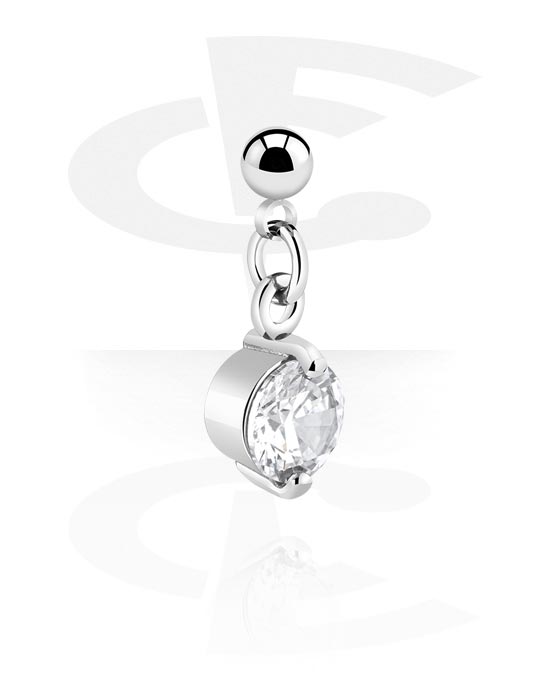 Ball for 1.2mm threaded pins (surgical steel, silver, shiny finish) with charm and crystal stone