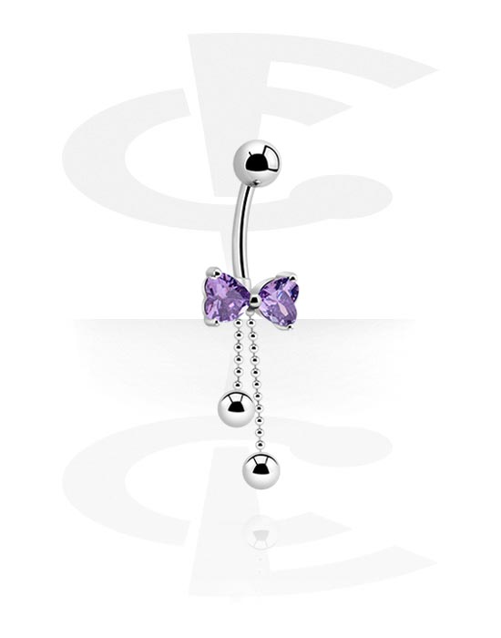 Belly button ring (surgical steel, silver, shiny finish) with bow and crystal stones