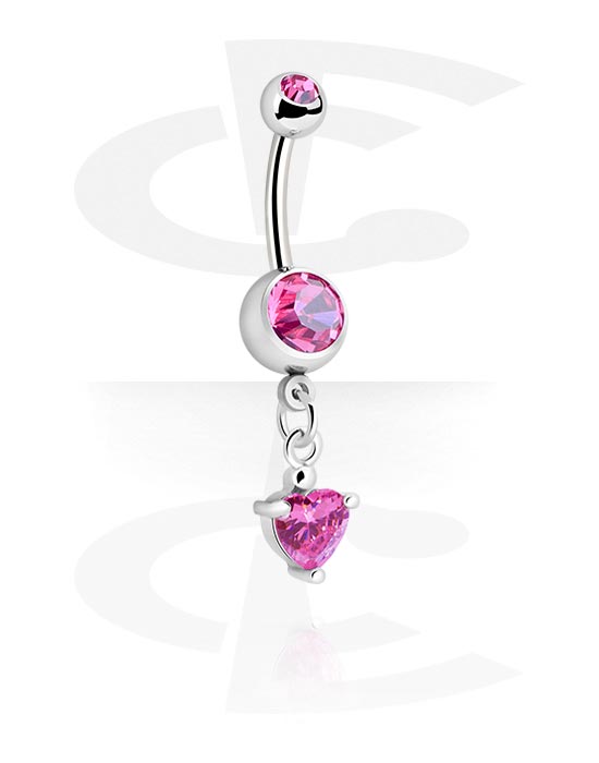 Belly button ring (surgical steel, silver, shiny finish) with heart charm and crystal stones