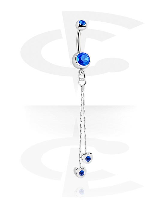 Keep your heart(s) in the right place with this curved barbell made of surgical steel. Featuring two jewelled surgical steel balls and two jewelled heart plated brass dangles, it comes with a total of four sparkling crystals for extra glamour. Select color and pop one in your shopping cart.